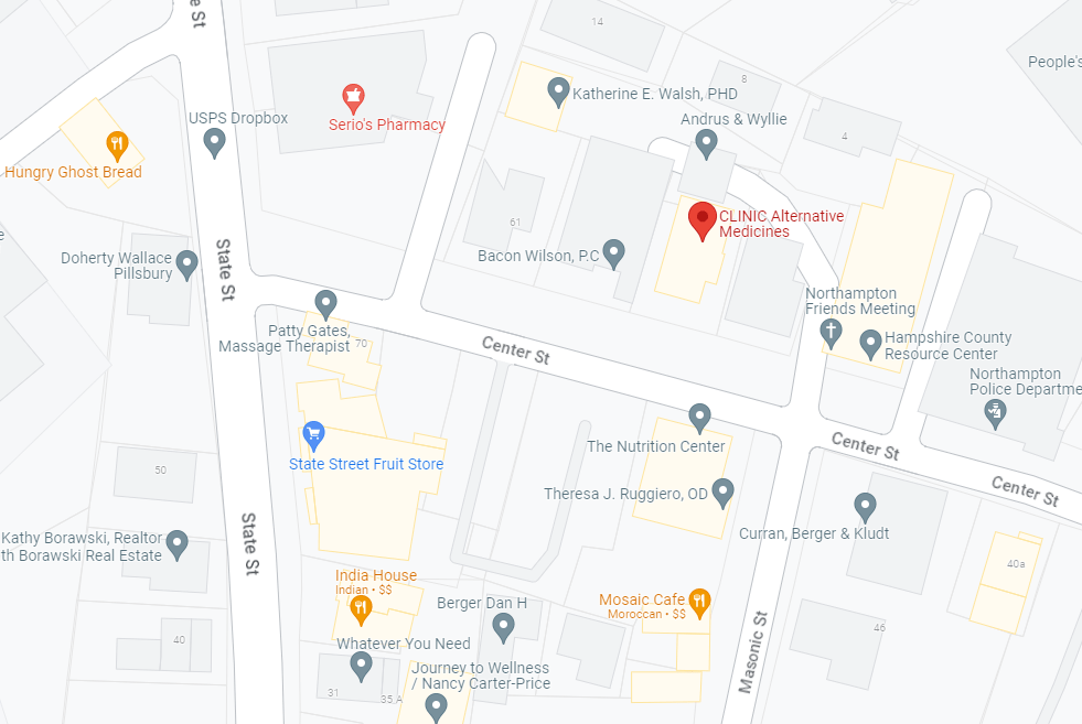Directions: Green Couch Psychiatry maintains an office within CLINIC Alternative Medicines, located at 53 Center Street, Northampton, MA 01060.